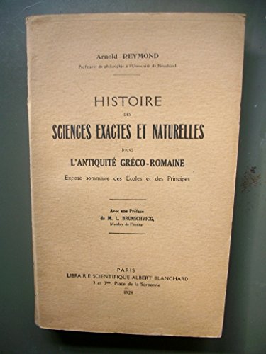 Arnold Reymond,... Histoire des sciences exactes et naturelles dans l'Antiquité gréco-romaine, exposé sommaire des Écoles et des principes. Avec une préface de M. L. Brunschvig PDF Download