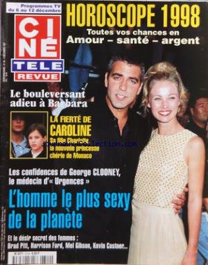 Free CINE TELE REVUE [No 49] du 04/12/1997 - HOROSCOPE 1998 - LE BOULEVERSANT ADIEU A BARBARA - LA FIERTE DE CAROLINE - SA FILLE CHARLOTTE - LES CONFIDENCES DE GEORGE CLOONEY - BRAD PITT - HARRISON FORD - MEL GIBSON - KEVIN COSTNER PDF Download